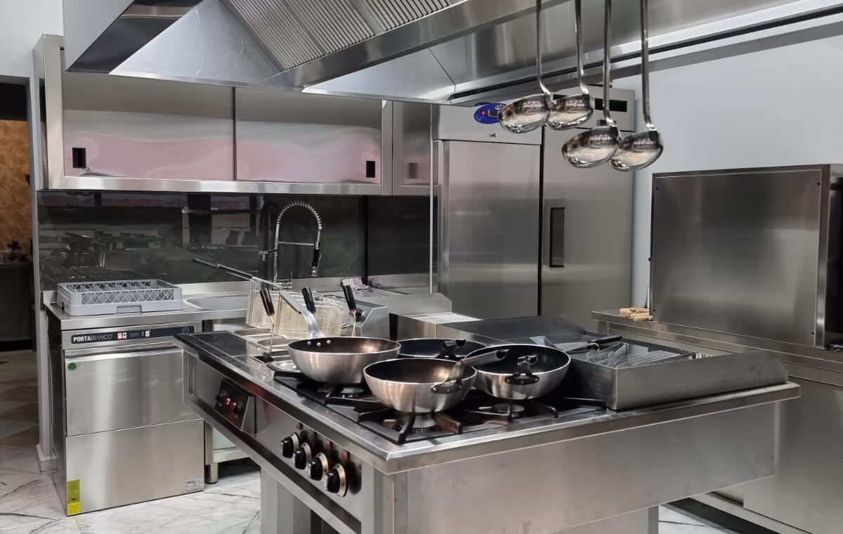 Custom stainless-steel elements help kitchens organize their workflow and maintain strict hygiene standards. Worktables, cabinets, shelving, and sinks are designed to fit the available space, allowing staff to move efficiently during preparation. Stainless steel resists moisture, heat, and corrosion, making it suitable for continuous use in restaurants, bakeries, and food-production facilities.